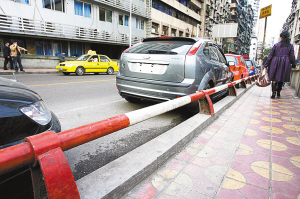 渝中區(qū)較場口附近新增設(shè)的道路防撞護欄。 記者 羅偉 攝