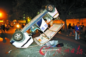 記者昨晚8時(shí)左右趕至現(xiàn)場(chǎng),發(fā)現(xiàn)路口已經(jīng)聚集了數(shù)十名警察和治安員。當(dāng)記者剛剛走進(jìn)開達(dá)玩具廠,就發(fā)現(xiàn)在路邊綠化帶旁已經(jīng)有5輛巡邏摩托車被放倒在地,車燈完全被砸壞,再往前行不到20米,就發(fā)現(xiàn)有2輛巡邏警車被掀翻砸爛在地,初步估計(jì)有近千人在工廠門口聚集。記者在人群中前行,沿路都是被砸爛的警車玻璃碎片。目擊者告訴記者,事故發(fā)生在晚上7時(shí)左右,目前已有5人受傷。
