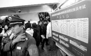 據(jù)了解,今年的公務(wù)員考試中,北京地區(qū)考生9.5萬人,比去年增加了1.5萬人,北京今年共在全市設(shè)立了132個(gè)考點(diǎn)、3186個(gè)考場(chǎng)。今年,國家公務(wù)員考試考錄比例為57比1,較之去年46比1的考錄比例競爭更加激烈,不少參加考試的考生戲稱自己是“炮灰”。