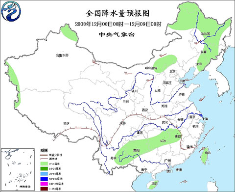 2008年12月8日8時(shí)—12月9日8時(shí)全國降水量預(yù)報(bào)圖