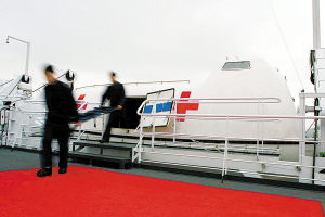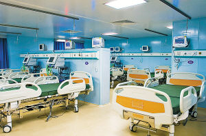 醫(yī)院船共有8個手術(shù)室,總面積達(dá)520平方米,配有遠(yuǎn)程醫(yī)療會診系統(tǒng)、新型CT機等高科技設(shè)備。重癥監(jiān)護室里,記者迎面碰到了上海海洋醫(yī)學(xué)研究所的沈俊良教授。他正克服船的激烈搖晃,雙手扶墻慢慢地向外移動。沈教授告訴記者,結(jié)合這次惡劣海況下航行訓(xùn)練,他們對這些醫(yī)療器械進行了各項技術(shù)評估。由于大部分醫(yī)療設(shè)備都不是專門為海上使用設(shè)計的,醫(yī)院船在海上航行特別是大風(fēng)浪航行條件下,設(shè)備的抗震性和精度都需要進行評估,從而為日后訓(xùn)練和執(zhí)行任務(wù)提供科學(xué)依據(jù)。