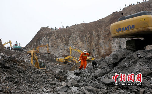 中新網(wǎng)峨眉樂都4月10日電(劉忠俊)10日14:55分,按照四川省公安消防總隊(duì)部署,成都市消防支隊(duì)政委馬昆帶著剛從沈陽(yáng)培訓(xùn)結(jié)束的兩只搜救犬以及訓(xùn)導(dǎo)員等趕到峨眉山市樂都鎮(zhèn)順江采石場(chǎng)山體垮滑現(xiàn)場(chǎng)增援搜救工作。經(jīng)過2只搜救犬現(xiàn)場(chǎng)三次搜尋,在垮塌現(xiàn)場(chǎng)找到一臺(tái)失蹤汽車。