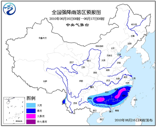 中央氣象臺今晨06時繼續(xù)發(fā)布暴雨黃色預警:預計,6月16日08時到6月17日08時,貴州南部、湖南南部、江西中南部、浙江南部、福建、廣東大部、廣西中北部、云南西部等地有大到暴雨。