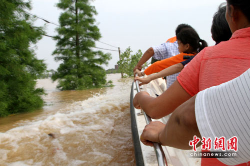 中新網(wǎng)臨川6月23日電(艾永全 何柳斌 劉占昆)撫河唱凱決堤進入第三天,23日下午,中新社記者重返重災區(qū)羅針鎮(zhèn),天空開始稀稀疏疏的下著小雨,福銀高速兩旁汪洋一片,沖鋒舟馳騁在洪水當中解救被困群眾。由于大部分村民已經(jīng)撤離,各地紛紛建立“護村隊”巡防保護村子安全。