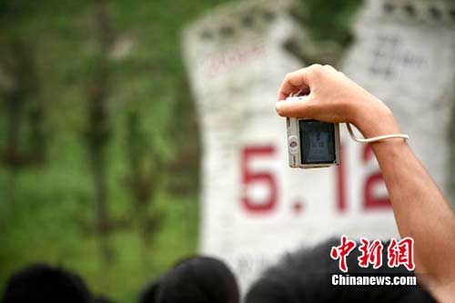 當(dāng)車隊(duì)穿過龍溪隧道,建設(shè)得如火如荼的映秀新鎮(zhèn)便出現(xiàn)在同學(xué)們眼前。在眾多新建房屋中,幾棟嚴(yán)重傾斜垮塌的建筑引起了大家的關(guān)注。該處是映秀鎮(zhèn)漩口中學(xué),地震中該校六層樓高的教學(xué)樓下陷垮塌變?yōu)楝F(xiàn)在所看到的三層建筑,大部分學(xué)生不幸遇難。聽著工作人員的介紹,不少女孩流下了眼淚。