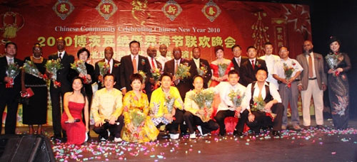 中新網(wǎng)2月20日電 據(jù)非洲《華僑周報(bào)》報(bào)道,2月13日晚,經(jīng)過(guò)緊張的籌備,博茨瓦納僑界2010春晚在博茨瓦納哈博羅內(nèi)大棕櫚國(guó)際會(huì)議中心(GICC)圓滿成功舉行。中國(guó)駐博茨瓦納大使劉煥興、政務(wù)參贊茍皓東夫婦、北京市人大副主任、中國(guó)僑聯(lián)副主席、北京市僑聯(lián)主席李昭玲及在博華僑華人約850人同聚一堂,共慶中華民族的傳統(tǒng)佳節(jié)—-虎年春節(jié)。晚會(huì)以規(guī)格最高、參與人數(shù)最多創(chuàng)下了歷屆博茨瓦納僑界春晚之最。