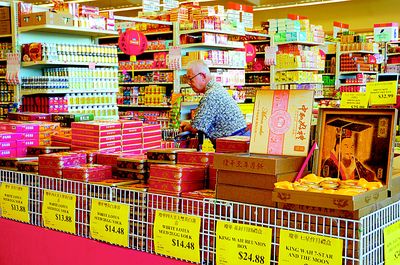 圣蓋博谷華人聚居城市華資超市,月餅上周開始上市,本地不少糕餅廠家也從本周開始推出月餅專柜。華資月餅進口商表示,外州訂單,已從本周開始發(fā)貨,預計下周起全面上架。