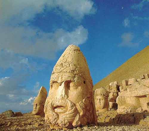 人像山是我自己編的名字,它的音譯應(yīng)該為內(nèi)姆魯特山。有些臺灣旅游書上把它叫作人頭山,聽著很是恐怖。雕像佇立在海拔2150米高的內(nèi)姆魯特山頂,這里其實是科瑪吉內(nèi)的國王安提俄克斯一世的陵墓。在這個英俊的國王的陵墓前面,列著他喜愛的神明雕像,他自己的雕像也擠身其中。我想,他是希望自己死后能入“仙班”,或者說,他本就是神……