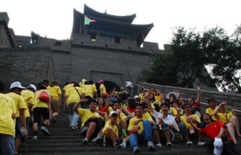 營員中的絕大多數(shù)是第一次到中國,長城在他們的腦海里只是關(guān)于“世界第八大奇跡”的想象,有機會親自攀登,大家的心情非常激動。車行至居庸關(guān)景區(qū),翠峰重迭,風(fēng)光旖旎,長城蜿蜒如龍盤踞在崇山峻嶺之間,營員們按捺不住激動的心情,不禁歡呼起來。
