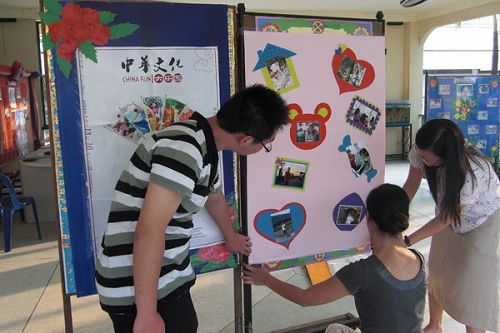在短暫的休整過后,各教學點的大樂園教師分別召開會議,研究安排本次“中華文化大樂園”活動所面臨的問題和解決辦法。針對此次大樂園生源較少的特殊情況,校方采取了加大宣傳力度、印發(fā)大樂園宣傳冊、給周邊地區(qū)的學校和社團分發(fā)邀請函等措施,以確保大樂園活動的順利開展。大樂園教師還精心布置了教師風采、書法、國畫、剪紙作品展板,希望能夠激發(fā)學生和家長們對學習中華傳統(tǒng)文化的興趣。