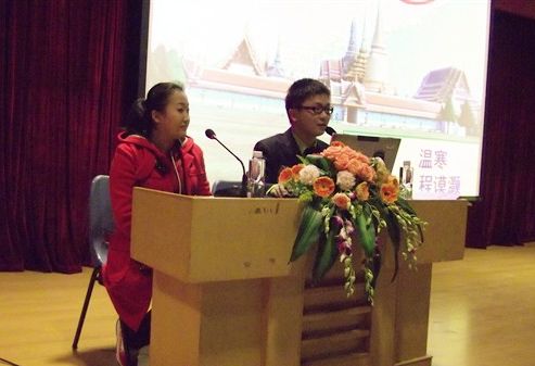 中新網(wǎng)4月7日電 據(jù)華僑大學(xué)網(wǎng)站消息,4月5日,華僑大學(xué)華文學(xué)院在綜合樓多功能廳舉辦“桑梓·泰國(guó)”赴泰志愿者交流會(huì),由學(xué)校2009屆赴泰國(guó)際漢語(yǔ)教師志愿者程謨?yōu)、溫寒為?duì)外漢語(yǔ)專業(yè)全體同學(xué)做赴泰志愿者工作報(bào)告,并與同學(xué)交流教學(xué)經(jīng)驗(yàn)。