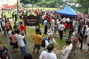 中新網(wǎng)5月11日電 據(jù)新加坡《聯(lián)合早報(bào)》報(bào)道,5月9日,數(shù)千名新加坡公眾在慶祝母親節(jié)之際,采取行動(dòng)對(duì)母語表達(dá)了一份深切關(guān)懷。他們?cè)谂e家外出用餐時(shí),首先前往芳林公園演說者角落,以簽名方式表達(dá)了對(duì)母語的一份熱愛。前后兩個(gè)小時(shí)的活動(dòng),收集了至少2400個(gè)簽名。