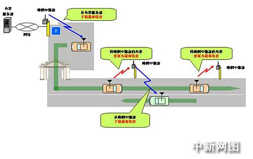 路側(cè)中繼器無需通過有線網(wǎng)絡與信息發(fā)送中心相連,路側(cè)中繼器的內(nèi)容可以根據(jù)車輛傳輸?shù)男畔⑦M行最新信息更新。因此,無須敷設有線網(wǎng)絡所需的大筆費用,只需設置具有DSRC車輛間通信裝置的路側(cè)中繼器的系統(tǒng),因此期待著減輕基礎設施構(gòu)筑費用。