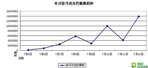 圖片說(shuō)明:7月4日以來(lái)針對(duì)微軟視頻漏洞的單日“掛馬”攻擊攔截量走勢(shì)圖
