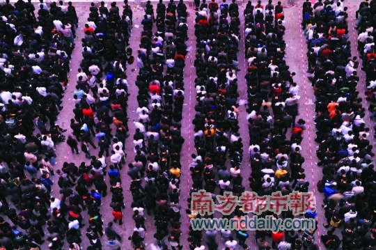 誰說今年企業(yè)招工難?過去一個多月,龍華富士康門口日日數(shù)千人求職,密度可比春運(yùn)火車站,進(jìn)人群易出人群難,站著睡覺不會倒,上個廁所得憋著。昨日凌晨5時左右,由于保安未上班無人看管,求職者更是擠倒欄桿,人仰馬翻,互相踩踏,幸無人員傷亡。