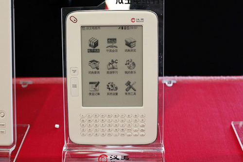 而在電子閱讀器終端方面,第三方數(shù)據(jù)顯示第一季度漢王在全球的電子閱讀器份額中占14.7%,較2009年同期大幅成長(zhǎng)。而在2010年5月10日,伴隨著10余款新品的亮相,漢王電紙書終端的力量進(jìn)一步增強(qiáng)。從5英寸到8英寸,從WIFI到3G,從全鍵盤到手寫,從LCD到EPD,從WinCE到Android,從單屏到多屏,漢王電紙書帶來(lái)了全方位的震撼。