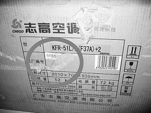 空調(diào)外包裝被撕過(guò)的痕跡很明顯