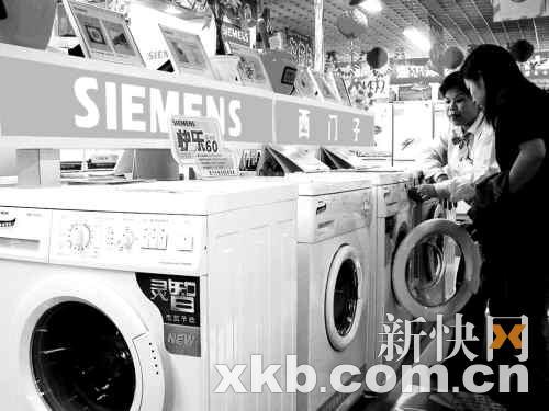 “600多元的雙缸洗衣機降到399元,1200元的全自動降到800多元,不少品牌在1000元左右‘打斗’!比涨坝浾咴谔K寧電器看到,小天鵝5公斤的半自動雙缸洗衣機只賣388元,而美菱6公斤半自動雙缸洗衣機價格也只要499元,而且還送100元的禮品。全自動洗衣機方面,5公斤左右的洗衣機無論是國產的美菱、海爾、小天鵝還是外資的三洋、LG、惠而浦的價格都降到了1000元左右。據(jù)營業(yè)員介紹,海爾、榮事達、小鴨、松下、TCL等國內外知名品牌洗衣機全線降價20%左右,最高降幅將達到40%。