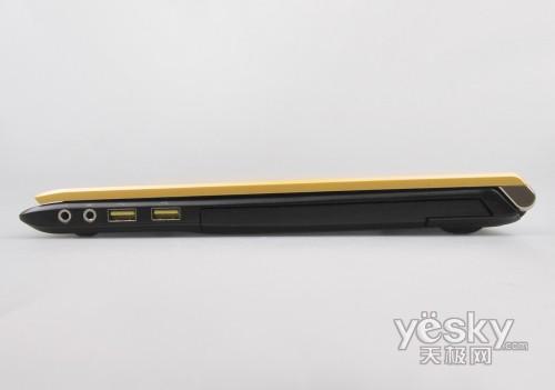 機身右側(cè)除了占用空間最大的光驅(qū)模塊插槽外,還加入了音頻I/O接口以及一對USB2.0接口,可用于外接USB存儲或控制設(shè)備,并為需要輔助供電的設(shè)備提供更方便的雙接口設(shè)計。