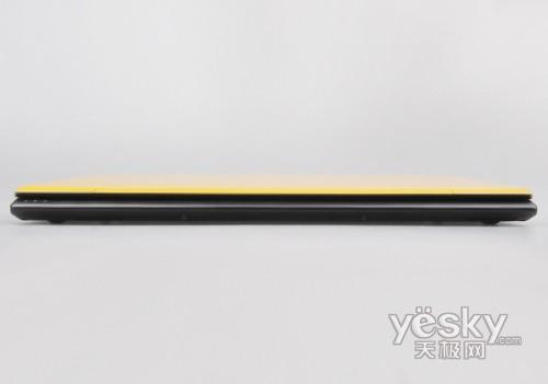機身后側(cè)全部被電池占據(jù),所以也沒有設(shè)置任何接口。綜合看來,同方將如此全面的功能接口濃縮在僅13.3英寸機身的兩個側(cè)面內(nèi)實屬不宜,而同時能夠保留光驅(qū)功能以及將厚度控制在30mm以內(nèi),更是值得稱道。