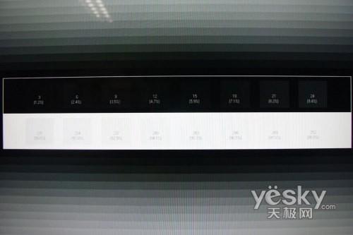 三星UA46B7000WF在灰階測(cè)試中表現(xiàn)還算不錯(cuò),灰階過渡自然,每個(gè)格子都能明顯的看出變化。