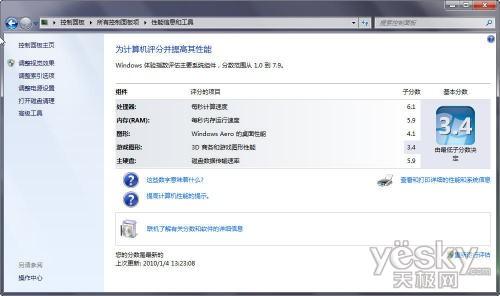 通過Win7檢測我們能夠很清晰看出Z55整體性能的表現(xiàn),其中處理性能最高,達(dá)到了6.1分,由于配備了4GB內(nèi)存配合64位操作系統(tǒng),內(nèi)存方面的性能也表現(xiàn)出色,達(dá)到了5.9分。另外硬盤部分也表現(xiàn)優(yōu)秀達(dá)到了5.9分。只是3D顯示部分稍顯不足僅為3.4分。不過對于商務(wù)用戶來說,3D部分在實(shí)際應(yīng)用中并不太多,況且配備9400M獨(dú)立顯卡能夠流暢運(yùn)行目前大部分主流游戲和商務(wù)3D軟件。
