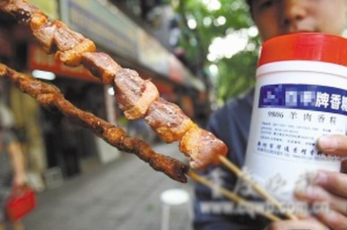 豬肉串里添加了香精,味道頓時(shí)變成了羊肉味。 記者 陸綱 攝