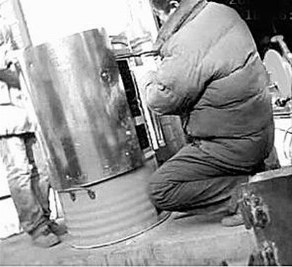 昨天(12月24日),記者來到天橋區(qū)臧家屯小區(qū)附近,一條街旁有幾家加工鐵爐子的業(yè)戶,其中一家業(yè)戶前擺著一些大鐵桶,業(yè)戶在一個藍色的大鐵桶前忙活著。記者走近一看,業(yè)戶在加工地瓜烤爐,他給藍色的大鐵桶包上半米高的白色鐵皮。“你這里加工地瓜烤爐嗎?多少錢一個?”記者問!300多元一個!睒I(yè)戶指著正在加工的大鐵桶說,“這個烤爐已經(jīng)有人買了,你如果想要烤爐,先挑個鐵桶吧。”
