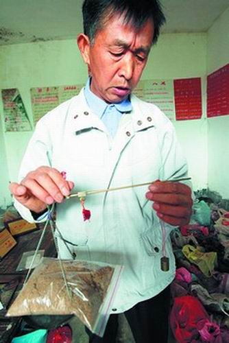 推開二樓的一間屋子,一股霉味撲鼻而來,地上擺放著數(shù)百個(gè)裝有各類中草藥材的塑料袋和壇壇罐罐。“這些藥材中99%是植物類藥品,也有少數(shù)動(dòng)物類和礦物類藥材,有些是我從邵東等地采購(gòu)來的,有些是我上山采來的!毙軐W(xué)賢拿出幾包已包裝好的粉末狀藥品告訴記者,這些是他研究出來的藥品,分別命名為“惡性腫瘤1號(hào)內(nèi)服藥”、“惡性腫瘤2號(hào)外敷藥”、“艾滋病攻克劑”等。記者看到,這些藥品的外包裝上無任何部門的批文,僅有一張打印的“說明書”。熊學(xué)賢說,他的這些藥品很有效果,已治好了多位患艾滋病和癌癥的病人。