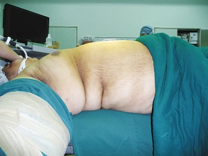 三天后,經(jīng)過周密的準備,田曉的手術(shù)正式開始?梢驗樘飼詫嵲谔亓,手術(shù)中要處理的問題就多了許多。手術(shù)臺太小還是可以克服的小問題,怎么上手術(shù)臺可動了一番腦筋。為了讓田曉上手術(shù)臺,醫(yī)院還出動了幾個身強力壯的年輕醫(yī)生,可是都搬不動田曉。于是梁輝副主任借鑒了國外的做法,借助一塊很大的可以移動的“滑板”,才將他移動到手術(shù)臺上。