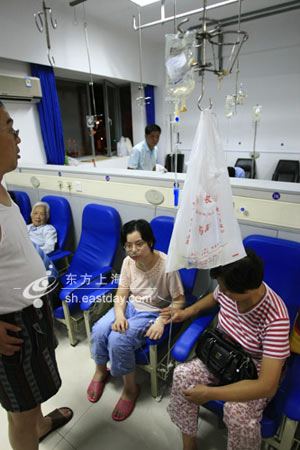 家住中原路990弄的劉小姐在聞到刺激性味道,暈倒在地,被家人送入醫(yī)院打點滴。劉小姐一邊打點滴,一邊向記者敘述情況:“很沖鼻,就是感覺讓人很惡心!眲⑿〗愀赣H劉先生說,“外面氣味比室內還重,當時女兒就暈過去,然后嘔吐!