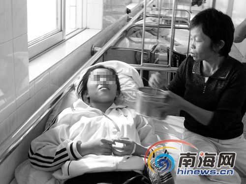 11月17日下午,記者在海南省農(nóng)墾總局醫(yī)院神經(jīng)內(nèi)科病房看到,阿霞的媽媽、姨媽和同學(xué)都在一旁照顧阿霞。阿霞目光呆滯,嘴里不時地喃喃自語說:“我好奇心強,我要找知音陪我去逛街,我有好多話要說,我想找回我的記憶……”阿霞的媽媽和同學(xué)告訴記者,阿霞讀書很刻苦,成績都排在前幾位,她一直向往重點高中,還夢想著考上重點大學(xué),考試總想要考第一。