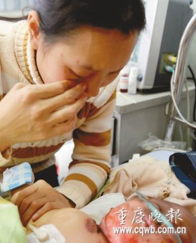 昨日(12月25日),在重醫(yī)附屬兒童醫(yī)院病房,文文在監(jiān)護儀的監(jiān)視下,奄奄一息。醫(yī)生稱,文文傷情特別嚴重,頭部頸部大面積燙傷。