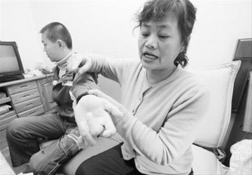 王春琴連忙趕回家。在明明穿衣服時(shí),她發(fā)現(xiàn)明明將毛衣左袖套到頭上!拔耶(dāng)時(shí)責(zé)怪他不好好穿衣服,胳膊怎么不使勁!彪S后她發(fā)現(xiàn)明明左胳膊竟然“悠蕩著,不聽使喚”。明明下床后,她發(fā)現(xiàn)明明左腿也使不上勁。