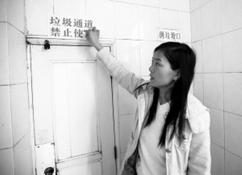 在李嬌的指引下,記者來到事發(fā)現(xiàn)場,此時,“肇事”的垃圾通道門上已經(jīng)重新上了鎖,并掛上“垃圾通道禁止使用”的警示標(biāo)語!斑@是出事后醫(yī)院設(shè)置的!崩顙沙鍪玖耸掳l(fā)當(dāng)時拍下的照片,“醫(yī)院的做法實則已經(jīng)承認(rèn)過錯,但就是不肯和我們協(xié)商賠償!