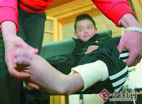 恒志的媽媽張?zhí)m輝說:“我是宜良馬街農(nóng)村的,10多年前,經(jīng)人介紹認(rèn)識了他(恒志的爸爸——劉某),后來就嫁到昆明,結(jié)婚后生了兒子恒志!碑(dāng)初,全家人都非常高興!皟鹤觾蓺q了,還不會走路,肉食一律不吃!”張?zhí)m輝說,3歲時,兒子還是不能下地走路,這可急壞了全家人,于是,帶著兒子四處尋醫(yī)問藥,醫(yī)生說兒子屬于天生肌肉無力,只能靠藥品控制病情惡化,防止肌肉萎縮。吃了一段時間的藥,恒志基本能下地走路。“兒子走起路來就像鴨子一樣,一瘸一拐的!睆?zhí)m輝說,盡管如此,他們并沒有放棄給兒子治病。