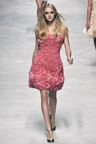 在08秋冬的T臺(tái)上,設(shè)計(jì)師們注重在面料上創(chuàng)造出極富肌理質(zhì)感的細(xì)節(jié)來裝飾服裝。一件細(xì)碎褶皺裝飾的粉色連身裙看起來那么與眾不同,而這正是因?yàn)檫@種富有結(jié)構(gòu)紋路的面料能帶來神奇的三維立體效果的原因。編輯精選出十件本季富含此趨勢(shì)的單品為你扮美提供更多的選擇。