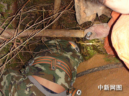 在教導(dǎo)員孫偉的建議下,當(dāng)?shù)卮迕裱杆僬襾?lái)挖井經(jīng)驗(yàn)豐富的師傅,對(duì)墻面用木板和鋼管進(jìn)行固定。固定完墻面后,中隊(duì)指揮員與劉闖再次下入機(jī)井底部,對(duì)傷者進(jìn)行救援,惡劣的環(huán)境更加挑戰(zhàn)了戰(zhàn)士的救援能力,劉闖小心翼翼對(duì)石塊進(jìn)行清理,頭頂上被水浸透的泥土不斷的滑落著,頭頂?shù)匿摴苁箘㈥J不能抬頭,救人心切的劉闖索性跪在了泥坑中。