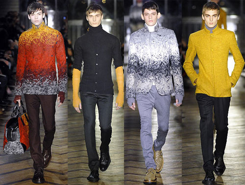 在男裝界,從80年代開始,每隔10年就是一次新舊世界的大更替,原來的明星失去了創(chuàng)新的能力,轉(zhuǎn)而鞏固技藝;新的明星脫了邊緣色彩,成為新一輪標(biāo)準(zhǔn)的制定者。在2008秋冬季的男裝舞臺上,沒有以往Dior Homme似的“逐鹿中原”的兇猛勢力,來自新舊兩個世界的設(shè)計師各自照亮頭頂?shù)囊黄炜铡km然看不到刺激的新銳力量很遺憾,卻應(yīng)了一句老話:“百花齊放,百家爭鳴!
