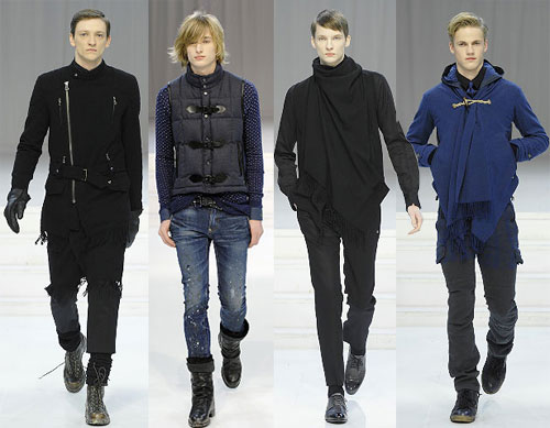 男裝被歸列入“時裝”的行列才區(qū)區(qū)30年,主流社會已不再認(rèn)為男性時尚把男人們都培養(yǎng)成了充滿嬌氣的娘娘腔。以往“傳統(tǒng)”與“新潮”的二元對立在男裝界已經(jīng)失效,即便是“男子氣的決絕”依舊可以通過時裝獲得。然而男裝發(fā)展到今天,男性時尚本身卻呈現(xiàn)出許多微觀領(lǐng)域的二元對立,這點在2008秋冬男裝的面貌上可獲得淋漓盡致的體現(xiàn)。