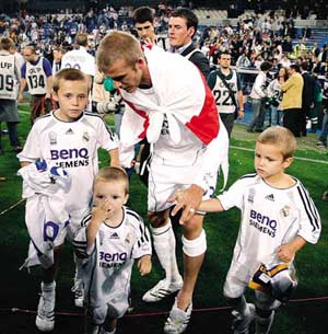爸爸小貝在皇馬的最后一站,三個(gè)兒子都來捧場