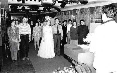 1998年5月11日,婚姻登記員向登記領(lǐng)結(jié)婚證的青年宣讀法律規(guī)定的有關(guān)夫妻的權(quán)利與義務(wù)。濟南市民政局婚姻登記管理處當年在向婚姻當事人分發(fā)結(jié)婚證書時,一改過去簡單、隨意的現(xiàn)象,而是為男女雙方舉行發(fā)證儀式,讓新婚夫婦感受到領(lǐng)取結(jié)婚證的神圣與莊嚴。