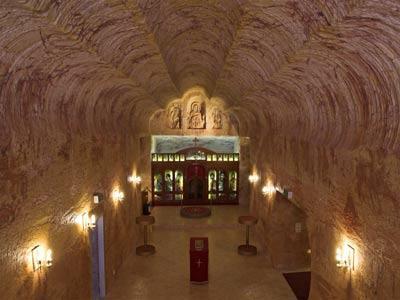 先從世界各地飛到澳大利亞悉尼,然后轉(zhuǎn)機(jī)到南部教會(huì)城市阿德萊德(Adelaide),在這里住宿一夜,補(bǔ)足精神后,第二天上午乘坐惟一一家經(jīng)營(yíng)庫(kù)波佩迪航線的Kendell Holidays航空公司的小飛機(jī),在只有8個(gè)座位的單引擎飛機(jī)上度過(guò)難挨的3個(gè)小時(shí)——沒(méi)有空姐伺候,也沒(méi)有咖啡和紅酒,舷窗下面是一望無(wú)際的紅土沙漠,就在女孩子們即將花容失色的當(dāng)口兒,庫(kù)波佩迪到了。在高達(dá)40攝氏度的熱浪中坐上四驅(qū)車,沿途清一色的坑洞和起伏的的紅色沙丘,仿佛登上了土星,在這里首先要學(xué)會(huì)“黑白顛倒”,把白天當(dāng)夜晚,把夜晚當(dāng)白天。先從晚上開(kāi)始吧,因?yàn)橥砩蠝囟炔拍芙迪聛?lái),先去商店給情人挑選蛋白石,然后——庫(kù)波佩迪郊外有一個(gè)稱作“月球世界”(Moon Plain)的沙丘,是觀看南半球流星雨的最佳地點(diǎn),與情人摸黑來(lái)到這里,坐在柔軟的沙子上,老板會(huì)送上兩杯冰涼的澳洲利亞橙,然后透過(guò)高倍天文鏡了望星河閃爍的太空,在流星即將滑落的瞬間,擁緊你的情人許下星語(yǔ)心愿.....沙漠里的白天酷熱難當(dāng),最好呆在旅館里,而洞穴旅館恰恰是庫(kù)波佩迪的特色,情人們稱其為“洞房”——地地道道的“洞”啊!事實(shí)上,鎮(zhèn)上除了教堂和醫(yī)院,基本都是洞穴居所,這些大小不等的洞穴全部是開(kāi)采蛋白石廢棄的礦坑。庫(kù)波佩迪最大的旅館“沙漠洞穴旅館”(Desert Cave Hotel)有20間“洞房”,別看在地下,卻相當(dāng)豪華,除了地下恒溫23攝氏度外,餐廳、酒吧、K房、珠寶店一應(yīng)俱全,曾經(jīng)入選過(guò)《世界頂級(jí)豪華小旅館》(Small Luxury Hotels of the World)。