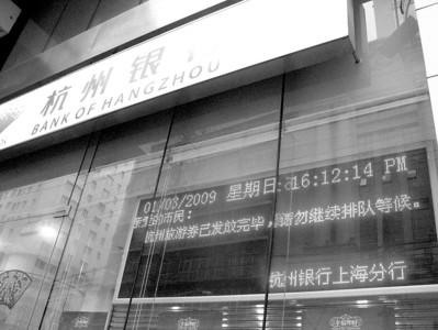 見到如此場面,杭州銀行決定提前1小時開始派發(fā)。杭州銀行上海分行新聞發(fā)言人邵燕敏告訴記者,為避免現(xiàn)場混亂,銀行每次允許10人進(jìn)入現(xiàn)場并憑身份證領(lǐng)取消費(fèi)券。但在派發(fā)開始半個多小時后,銀行工作人員通知排隊者,旅游券就快領(lǐng)完,排在后面的市民可以不用再等了。