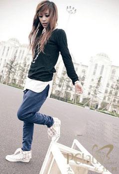 超級瘦腳的款式加上略微寬大的臀部和大腿部分的設(shè)計(jì),十分適合梨子型的女生,而且還能讓你看起來帶有中性的美感,給人酷酷的感覺。