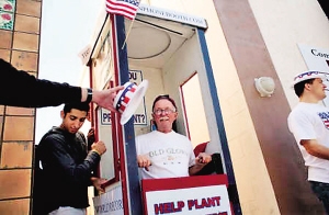 為了讓自己想在白宮草坪上栽種“美國第一樹”的愿望能引起奧巴馬的重視,今年4月1日,奧托克又生出了一個(gè)離奇的主意。他竟然要在一個(gè)公用電話亭中生活一個(gè)月,直到4月29日他72歲生日那天才出來。每天當(dāng)中,奧托克只有上廁所時(shí)才會(huì)短暫地離開電話亭。