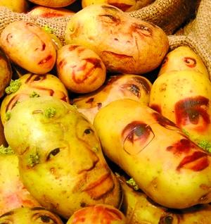 黎巴嫩藝術(shù)家Ginou Choueiri在個(gè)人博客上推出土豆肖像藝術(shù),利用土豆外皮的天然紋理、顏色繪出各式人等的面部表情。