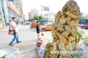 3.6萬元!江北區(qū)望海花市四區(qū)南側(cè)的一座鐘乳石最近開出了天價,等待買家。