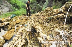 巨大的鐘乳石被丟棄在河溝 記者 史宗偉 攝