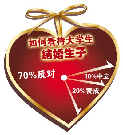 在校大學(xué)生結(jié)婚生子,社會是怎么看待的呢?記者昨日通過網(wǎng)絡(luò)隨機(jī)采訪了30位網(wǎng)友,他們中有公務(wù)員、醫(yī)生、教師、大學(xué)生、白領(lǐng)、工人、家庭主婦等各類人群。結(jié)果顯示,約7成人反對,2成人贊成,還有1成人持中立態(tài)度。